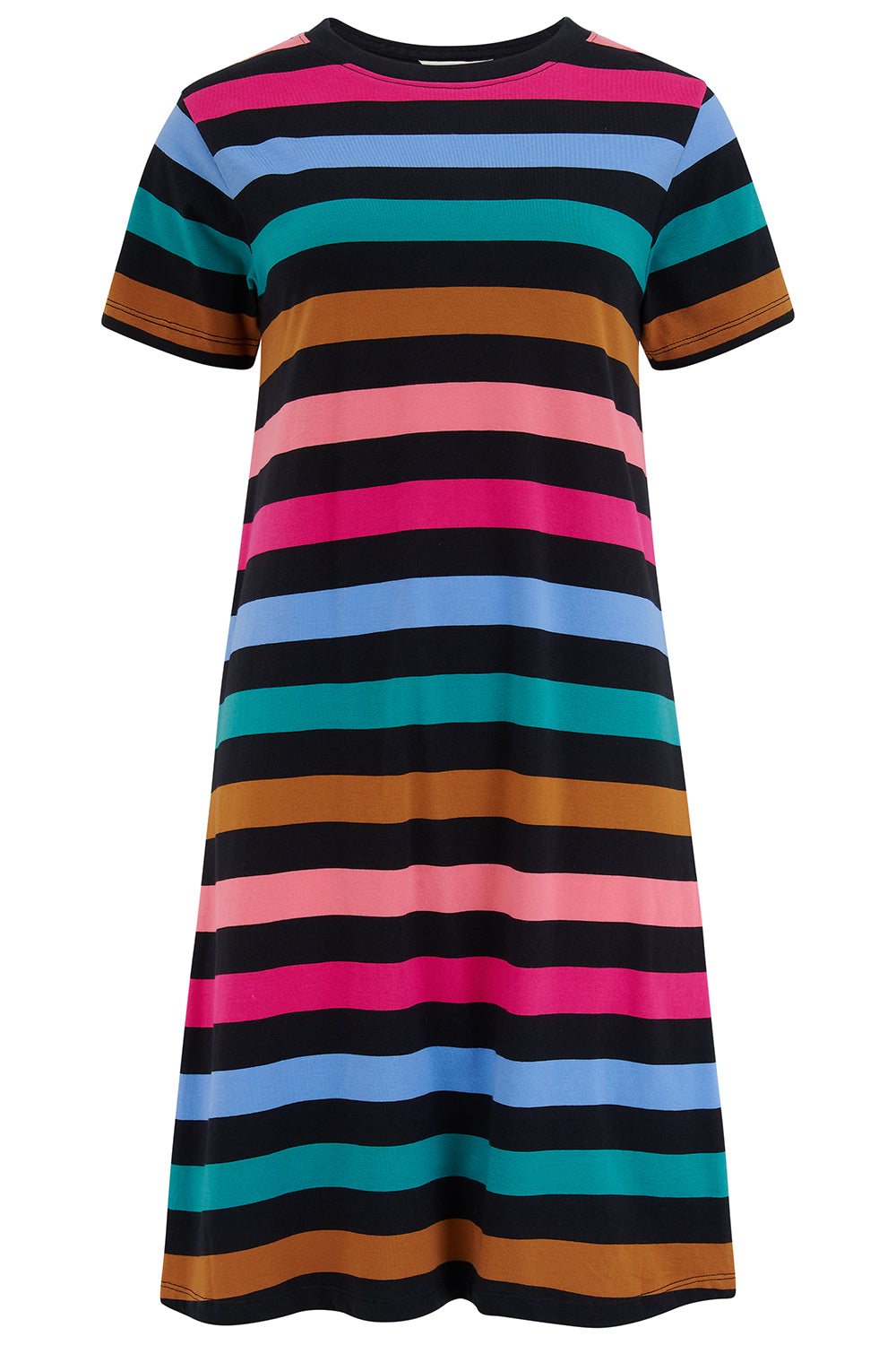 Dress - Sia Jersey Mini Dress - Black/Multi, Alternating Stripes