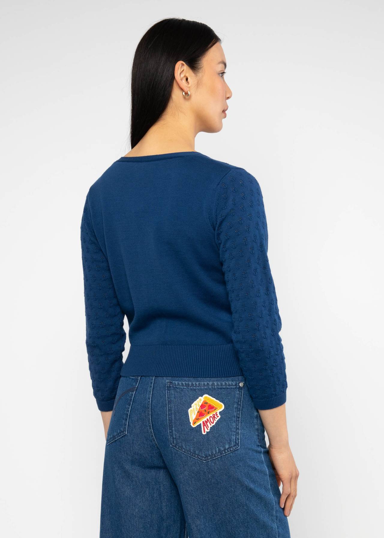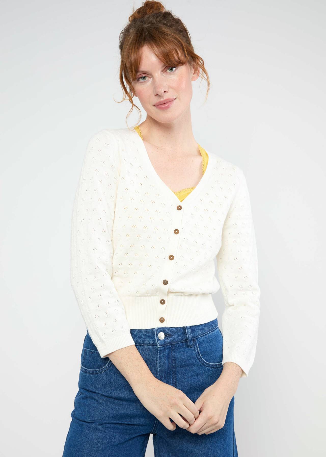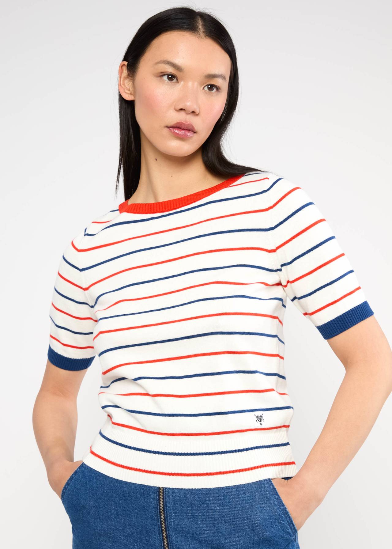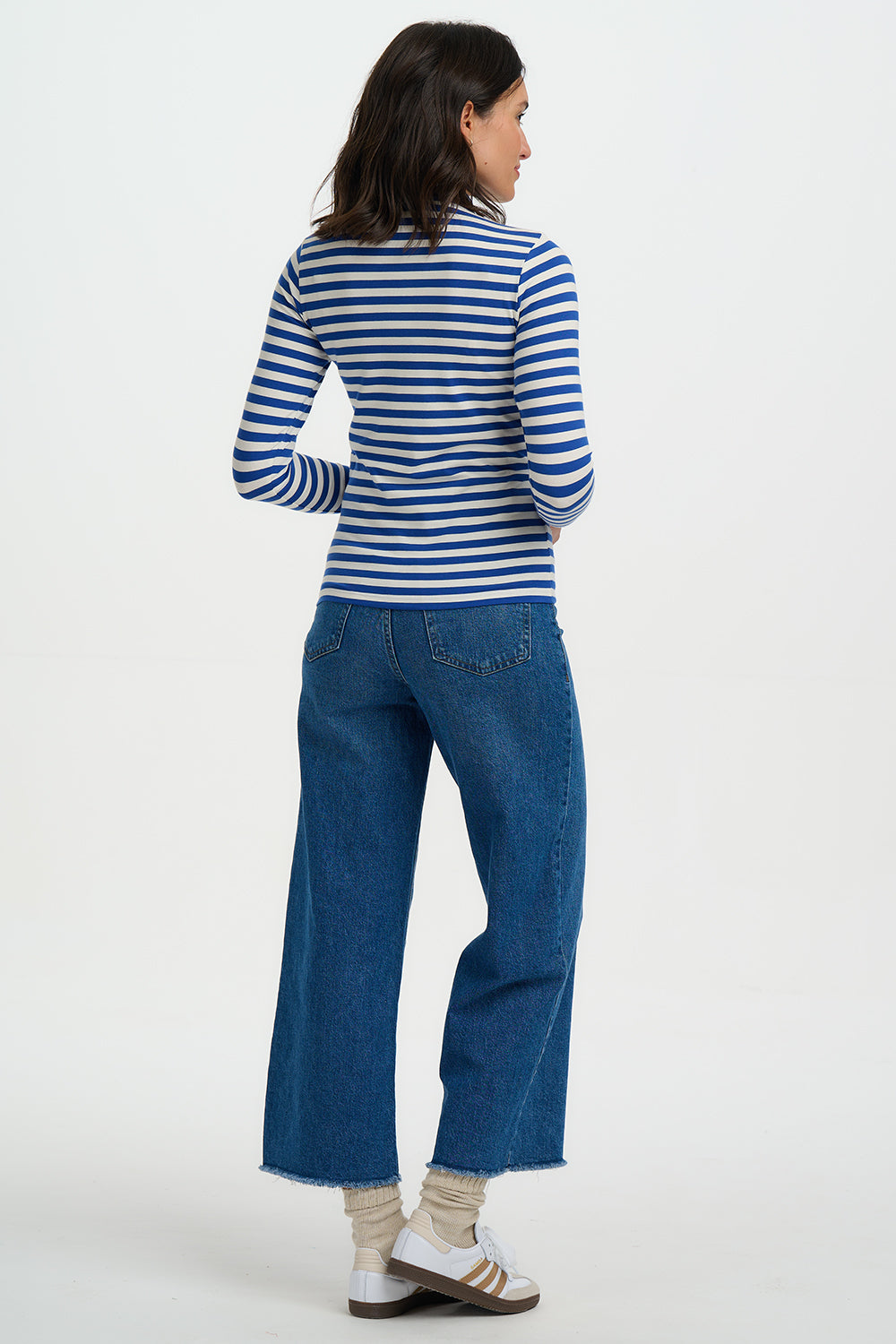 Top - Annika Jersey Top - Off White/Blue, Cherry