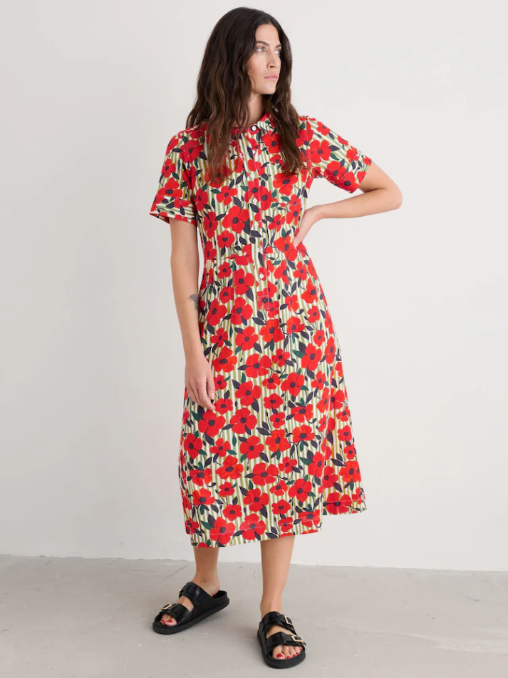 Kleid - Birch Glade Dress - Stripey Floral Moss