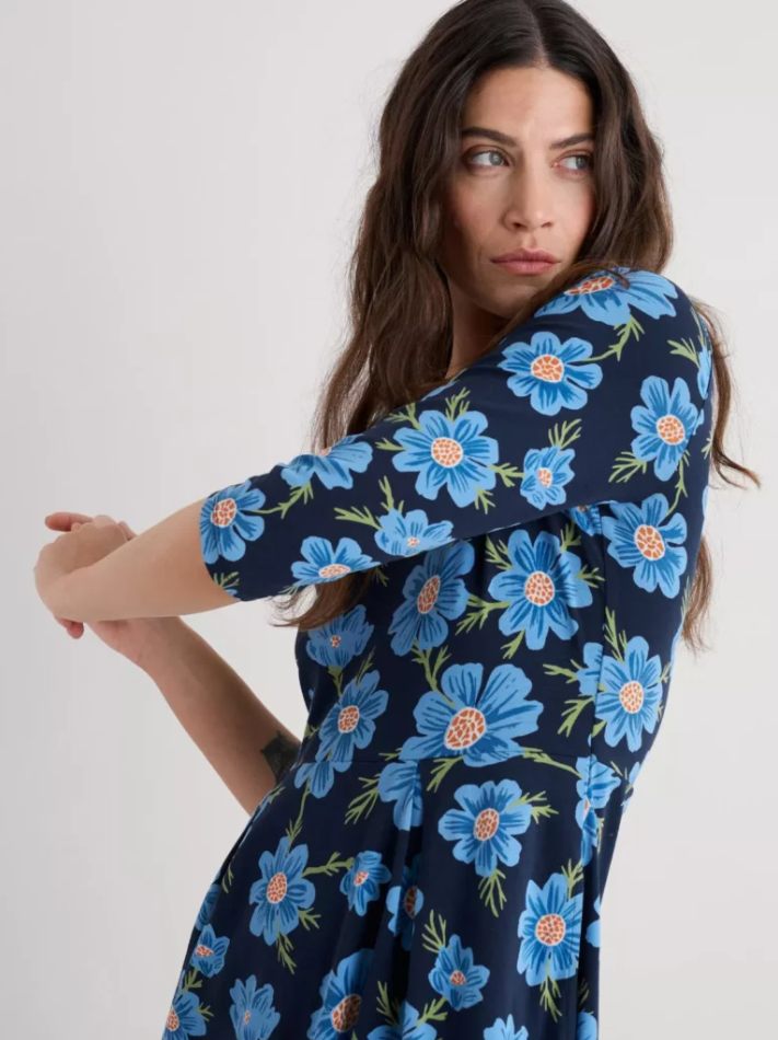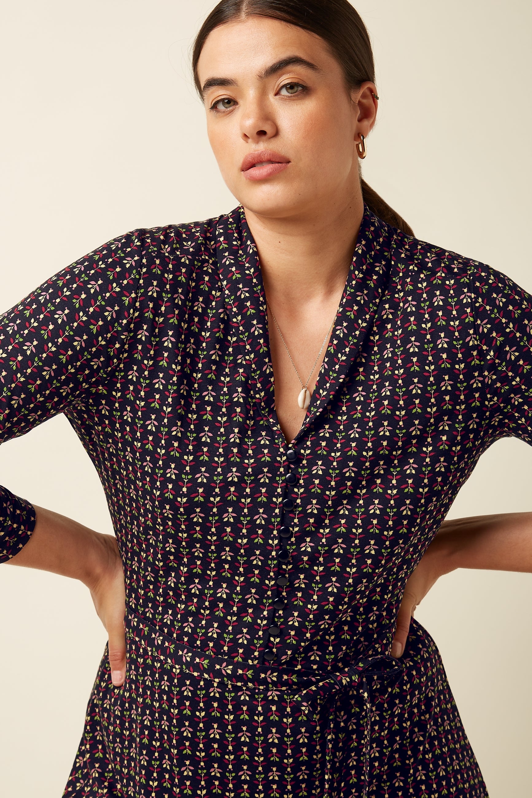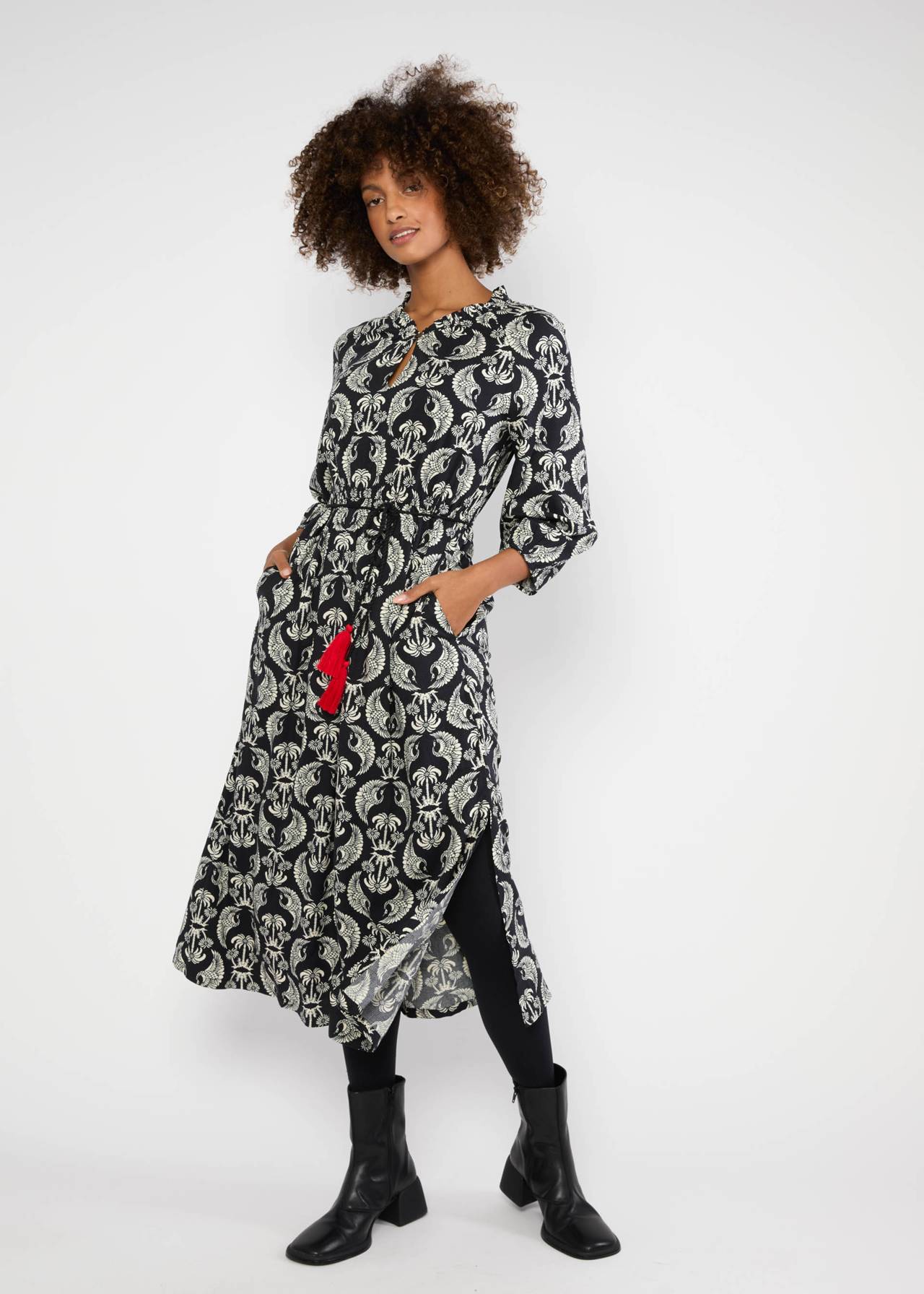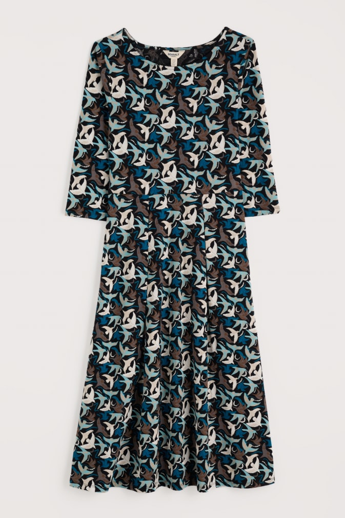 Kleid - 3/4 Wild Bouquet Dress - Swooping Birds Onyx