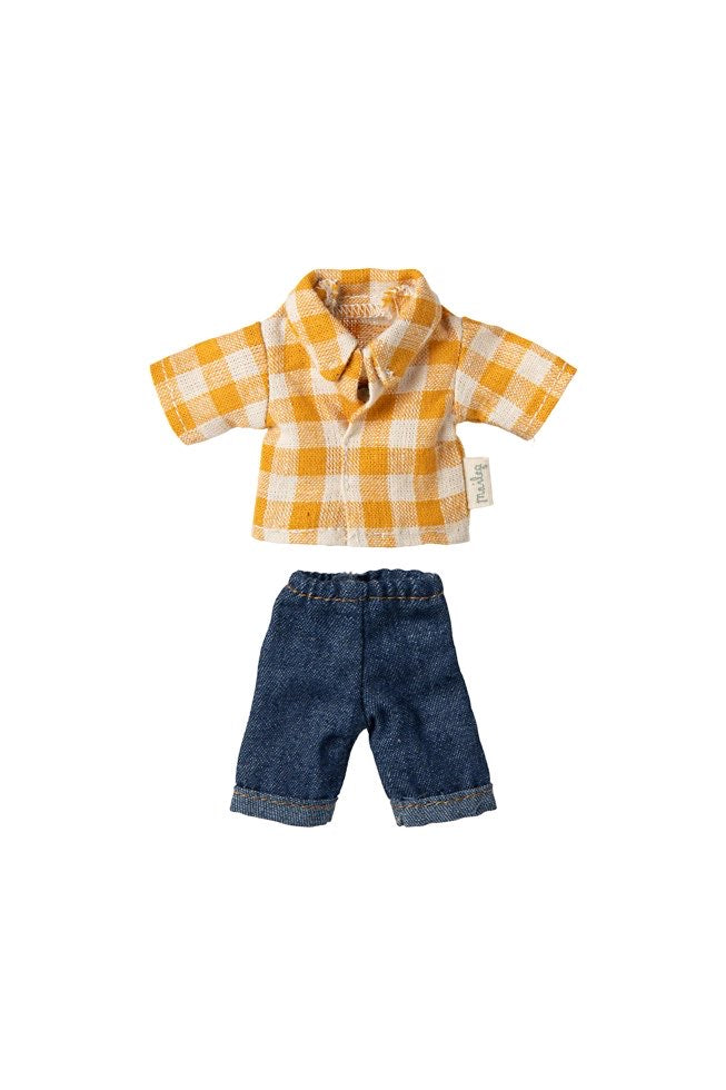 Kleidung - Gelbes kariertes Hemd und Hose - Papa Maus