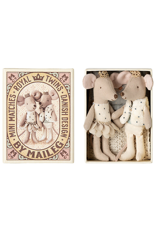 Maus - Königliche Zwillingsmäuse - in Streichholzschachtel - kleine Schwester und Bruder