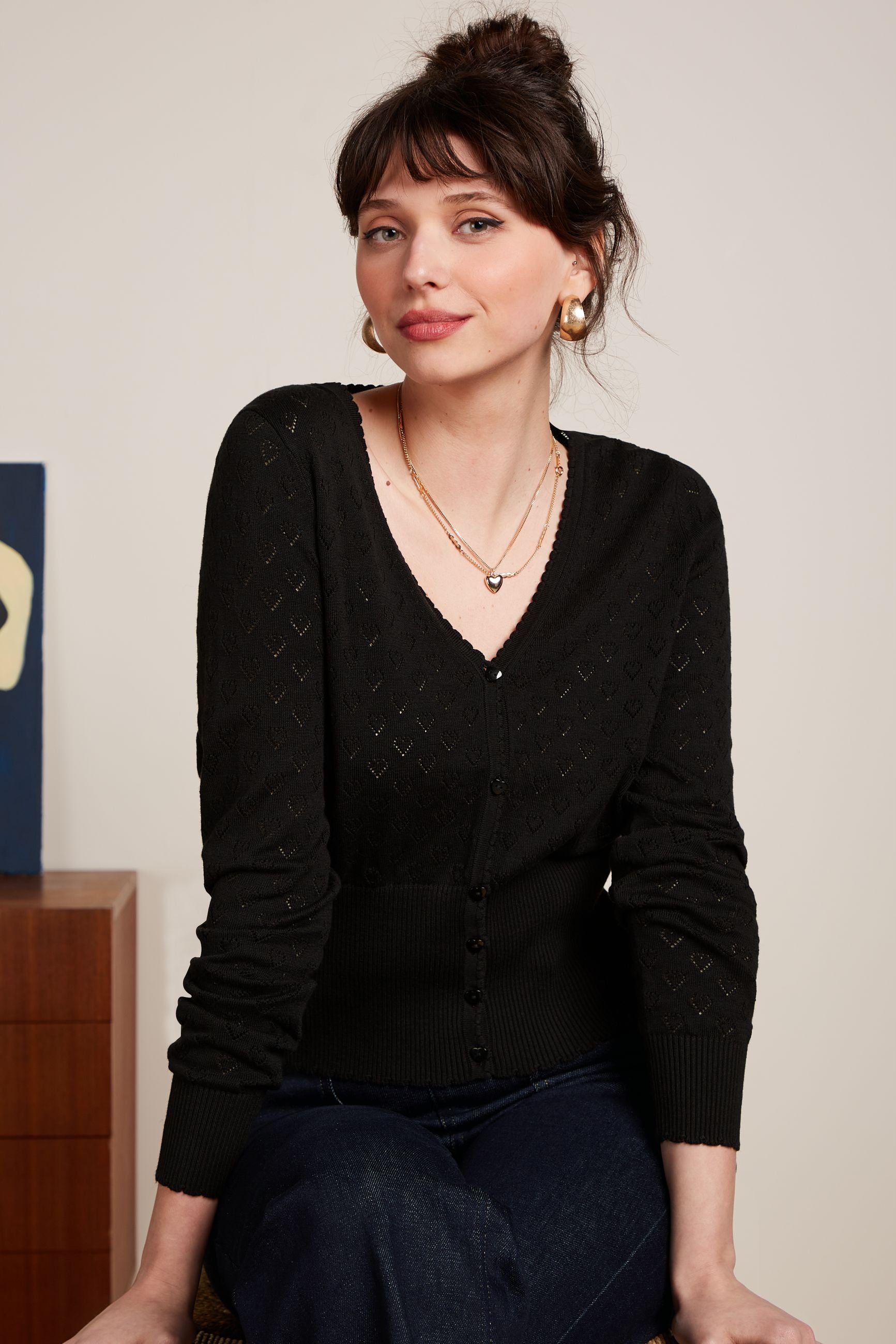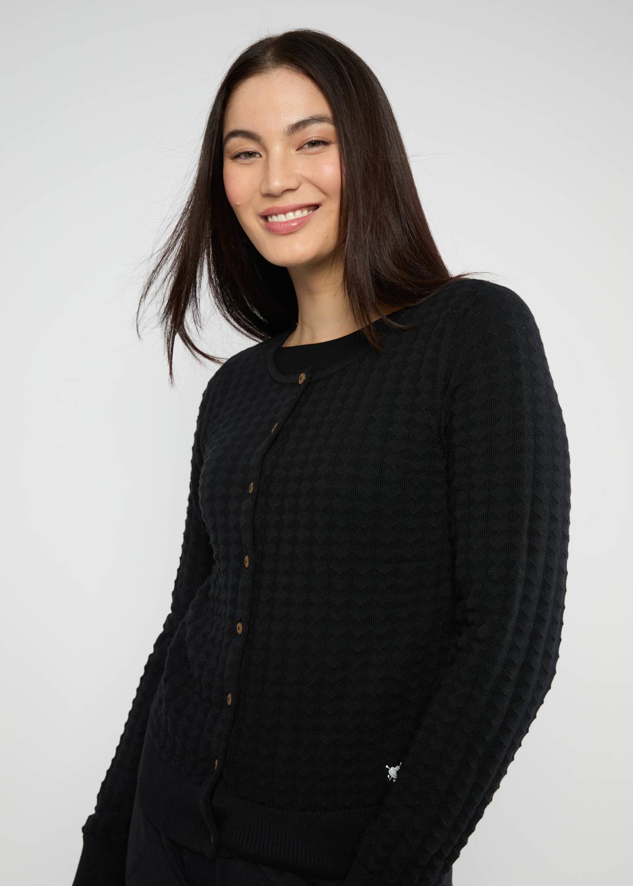 Strickjacke - Cardi Roundneck Cocoon - Black