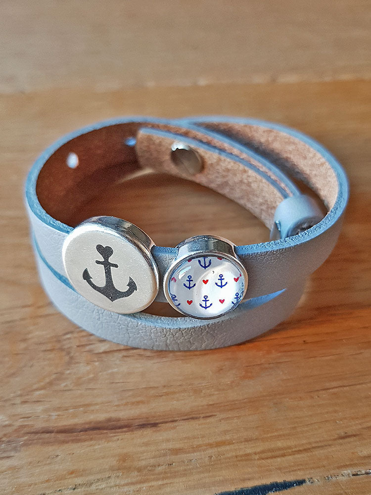 Armband mit Slider-Perle Anker grau