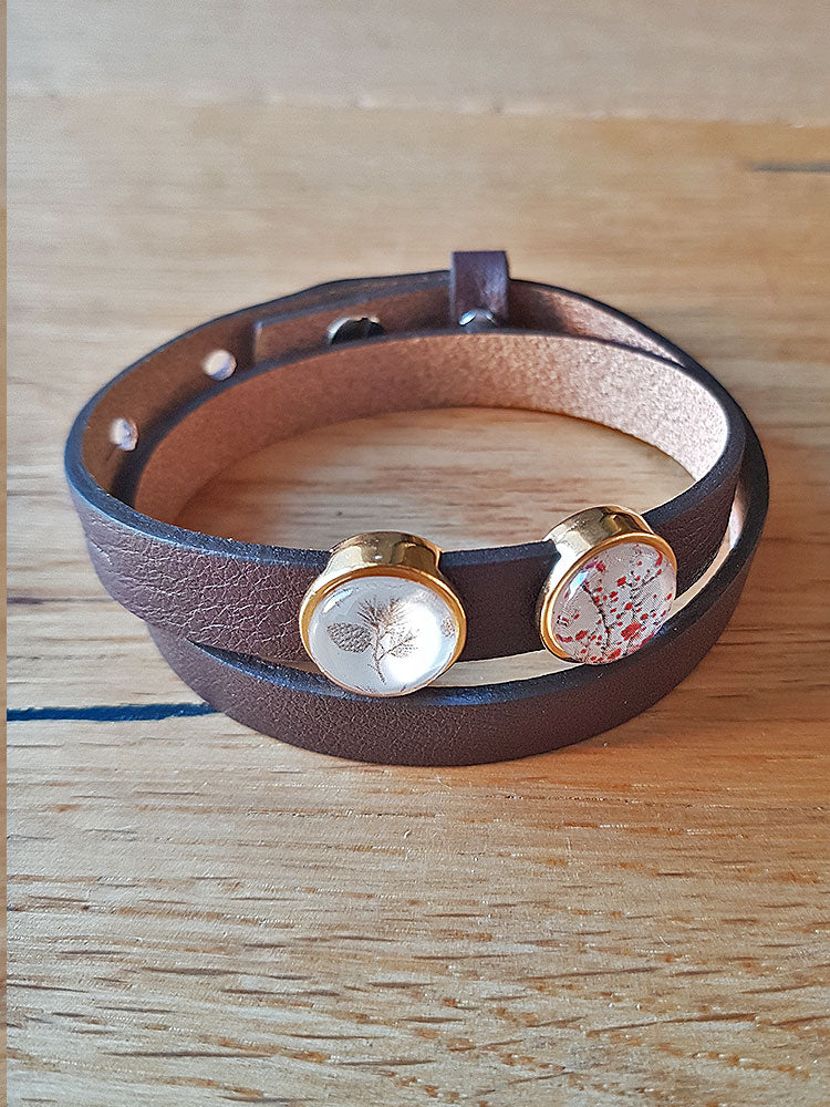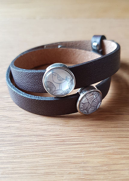 Armband mit Slider-Perlen braun - Vogel und Blumen