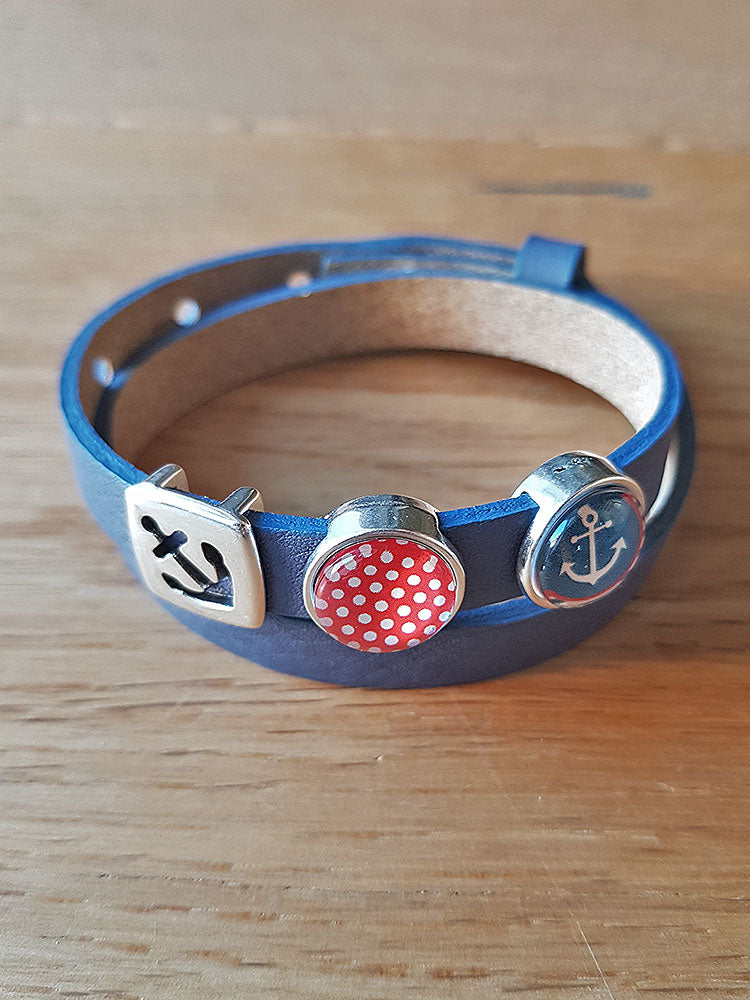 Armband mit Slider-Perle Anker/ Polka dots blau