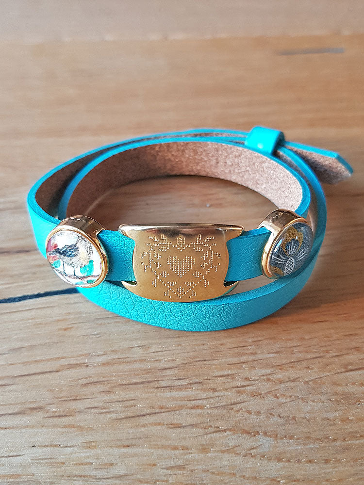 Armband mit Slider-Perlen blau- Schwalbe und Blumen