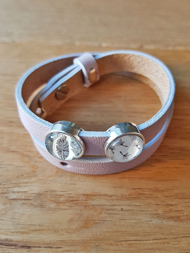 Armband mit Slider-Perlen rosa Feder/ Pusteblume