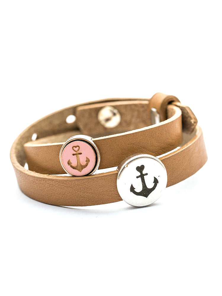 Armband mit Slider-Perle Anker braun