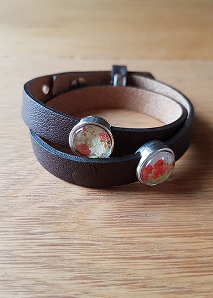 Armband mit Slider-Perlen braun - Blumen