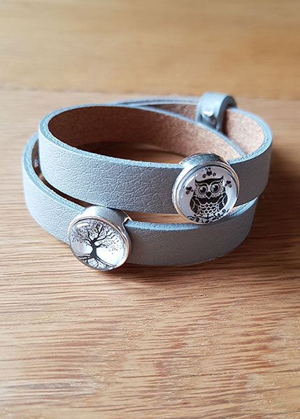 Armband mit Slider-Perlen grau - Eule und Lebensbaum