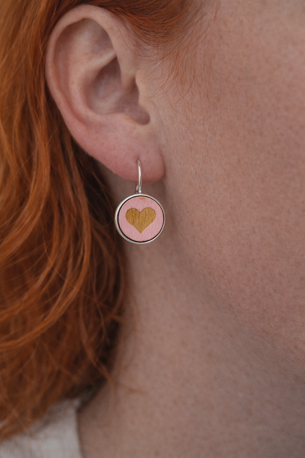 Ohrschmuck Heimatliebe - Holz Herz rosa - Hänger